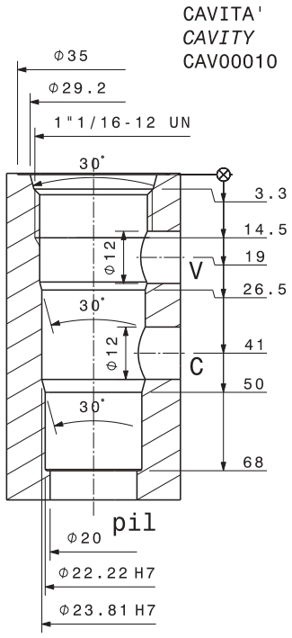 | Taratura | La valvola deve essere tarata almeno 1,3 volte la massima pressione indotta dal carico | ||