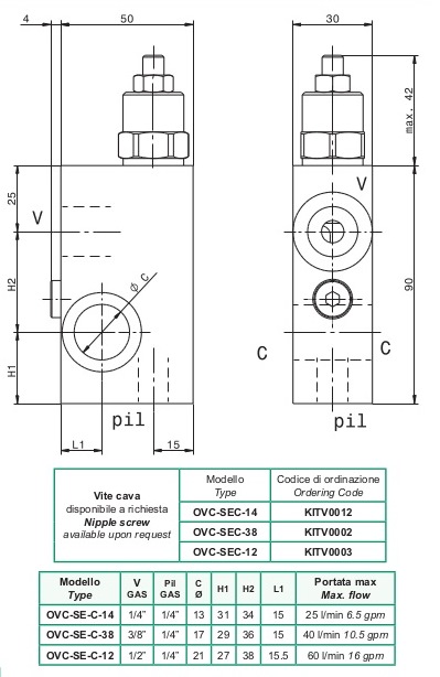 | OVC-SE-C-12 | 1/2" GAS | 1/4" GAS | 21 | 70 |